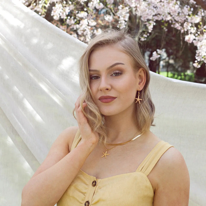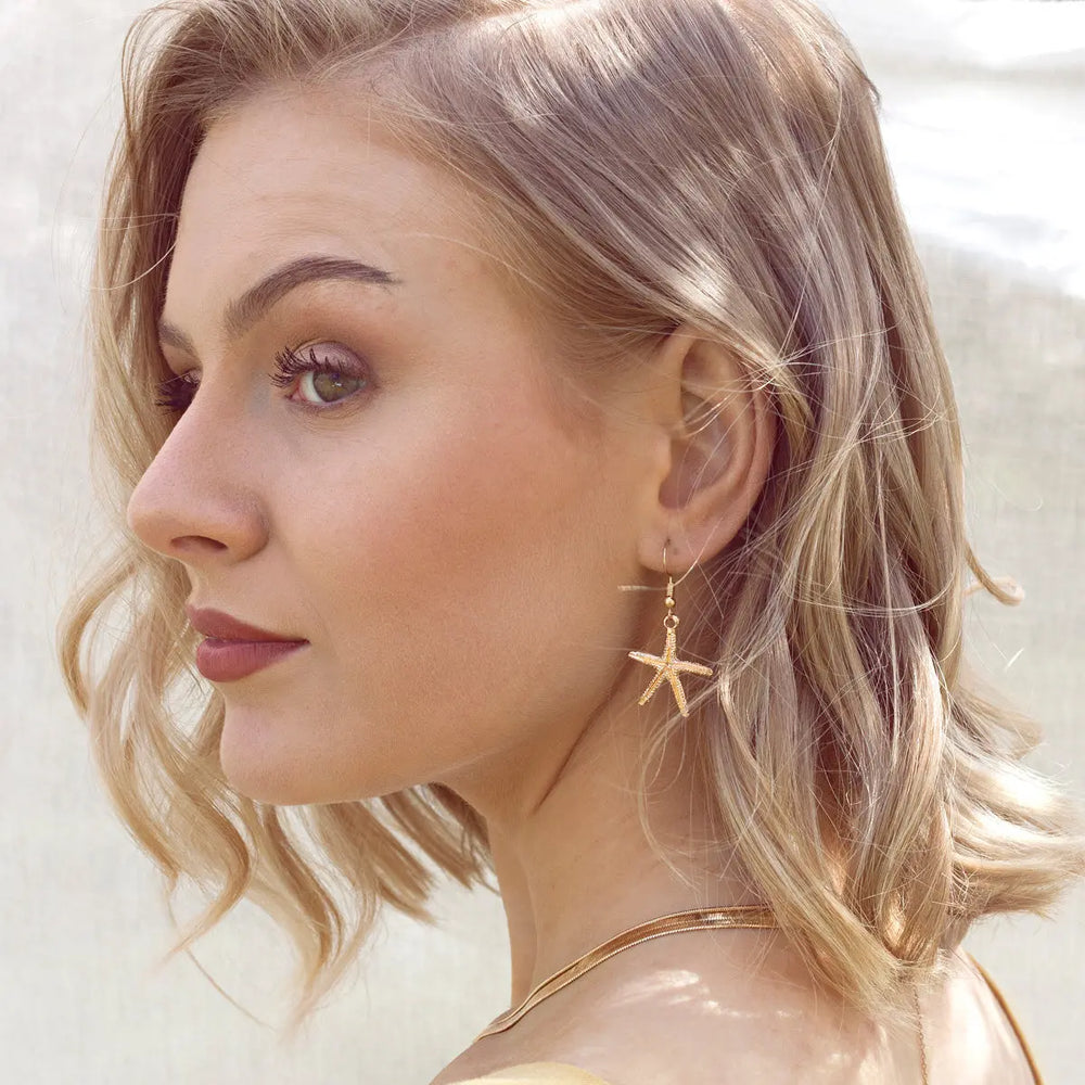 Unser brandneuer Deluxe-Seestern-Ohrring ist ein zeitloses Schmuckstück. Es strahlt Eleganz und Erinnerungen an heiße Sommertage und Sand zwischen den Zehen aus. Frei von Blei, Nickel und Cadmium.