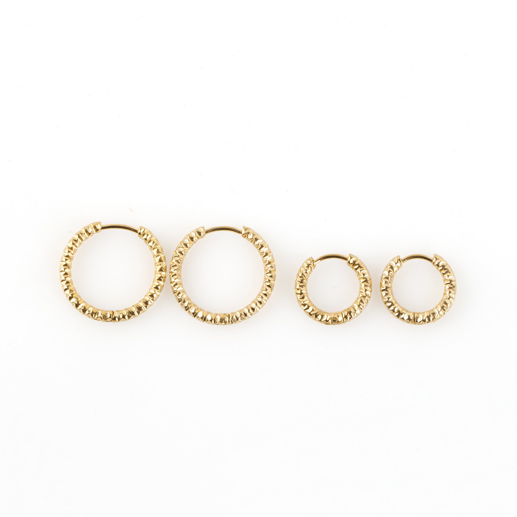 Unverzichtbare Creolen mit strukturiertem Design für jeden Tag. Diese klassischen, leichten Ohrringe aus Edelstahl sind wasserfest und anlaufgeschützt und lassen sich mühelos tragen. Erhältlich in Silber und Gold, passend zu Ihrem Stil und Ihren Bedürfnissen.