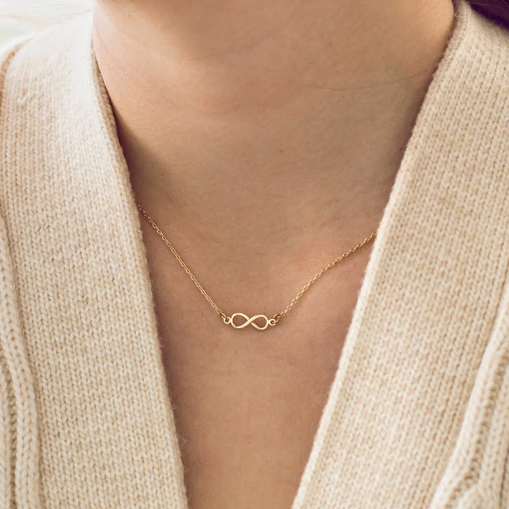 Elegante und schöne Halskette mit einem Unendlichkeitssymbol, tragen Sie sie selbst oder verschenken Sie sie perfekt. Diese Halskette wird in unserer wunderschönen Verpackung geliefert. Messingsockel mit Gold- oder Silberbeschichtung. Frei von Blei, Nickel und Cadmium