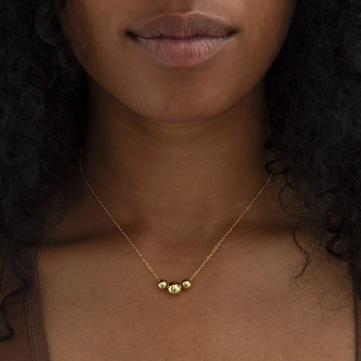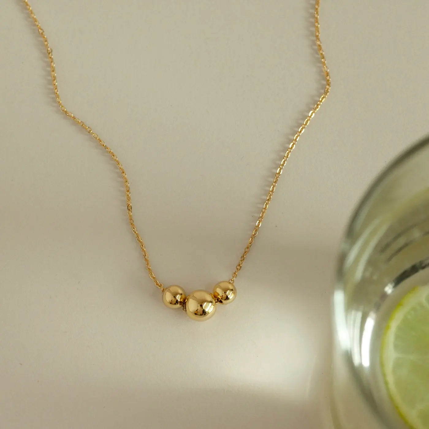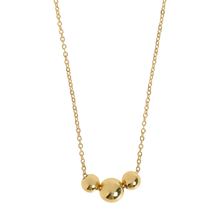 Our new stainless steel collection offers a range of total waterproof jewellery. Shower, swim and exercise without tarnishing your fave pieces. This lovely necklace has three round beads on a thin chain. Such a cute compliment to any outfit!