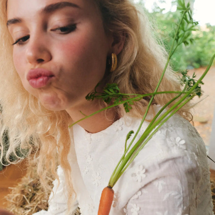 Super chunky earrings with a ribbed finish. We are obsessed! The earrings are hollow so even if they are chunky, they are lightweight.