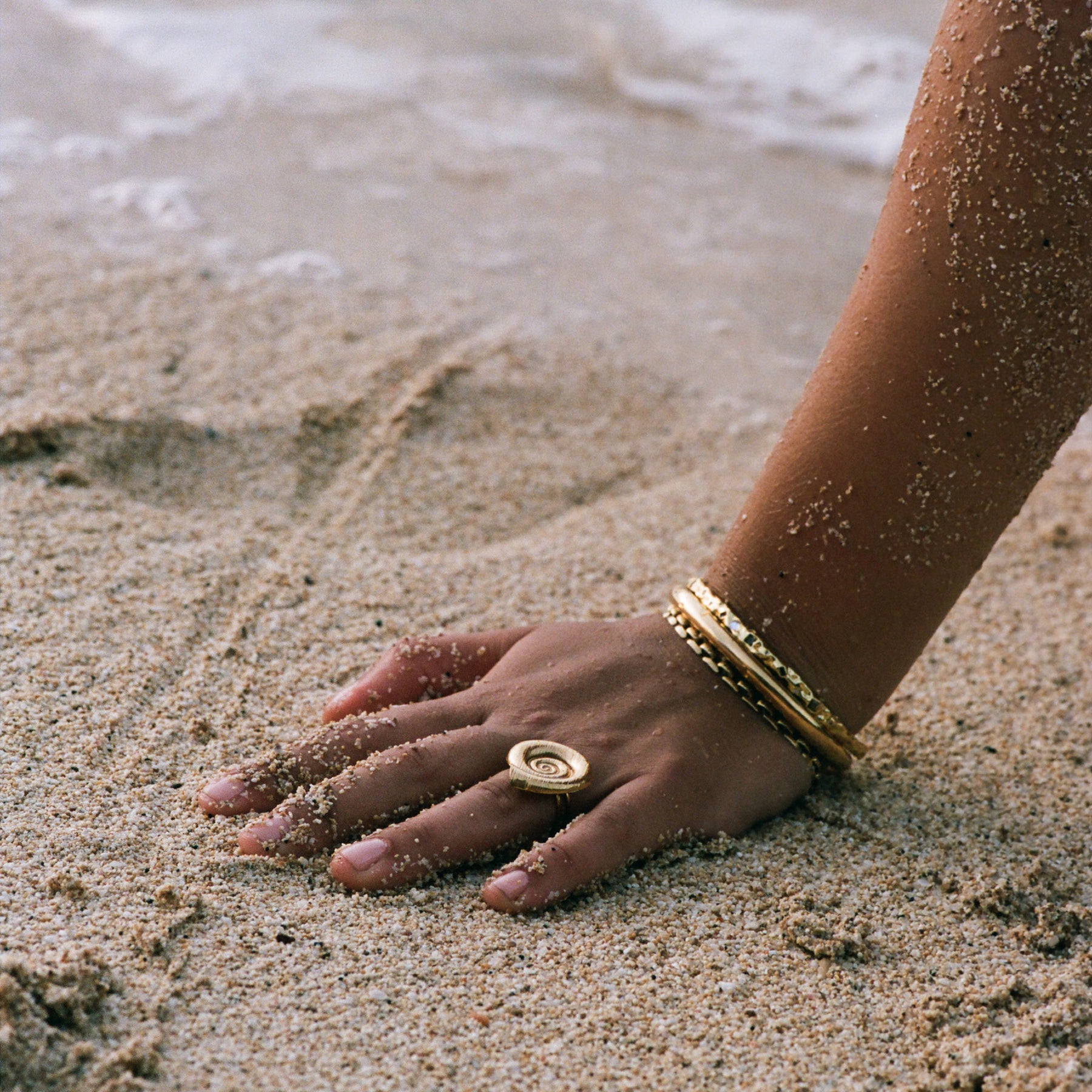 A seashell treasure, made to fit you. Ebba is an adjustable and water resistant ring crafted in durable stainless steel, featuring an elegant seashell design. Whether worn solo or stacked with your favorite rings, Ebba is the perfect reminder of salty air, sandy toes, and endless summer days.