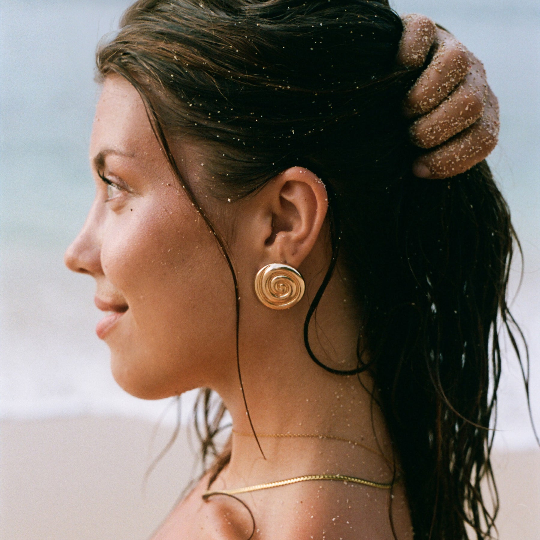 Bring those beachy vibes wherever you go with these shell earrings. These aren't your basic studs – they're a subtle nod to the ocean, crafted in long lasting stainless steel. Perfect for adding a touch of effortless cool to your everyday look or dressing up for a night out. And yeah, you guessed it – they're water resistant, so no stress if you get caught in the rain or decide to take a dip. Keep it chill, keep it stylish.