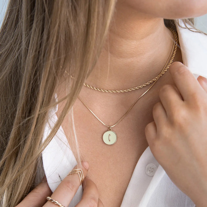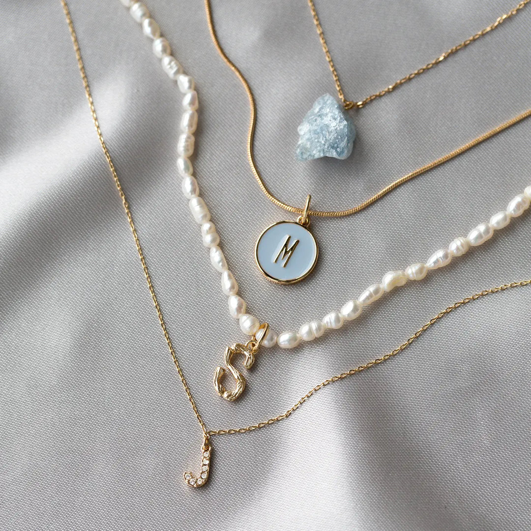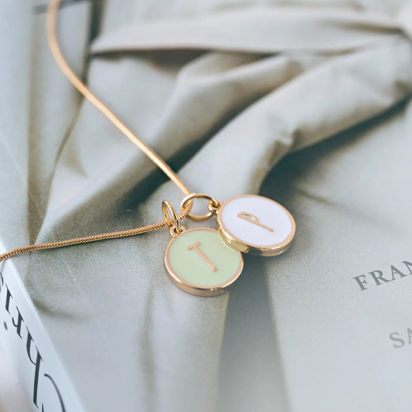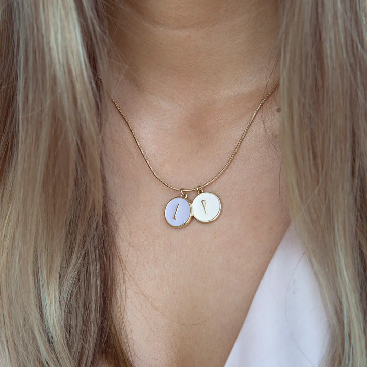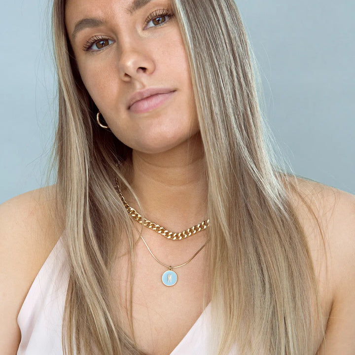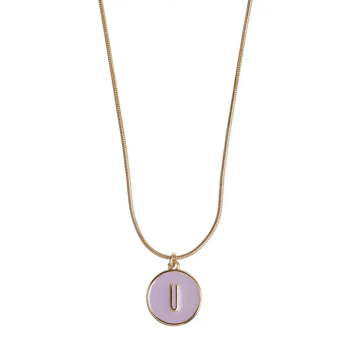 We are ready to invite spring with our colorful letter necklace. The pendent vary between different pastel colors depending on which letter you choose.The chain is a thin snake chain that gives the necklace an extra shine. Carry your personal letter and add more letters to your necklace for the important people in your life. All our jewelry comes with our nice packaging! Brass with gold plating. Free from lead, nickel and cadmium. Length: 42 cm + 7 cm extension.