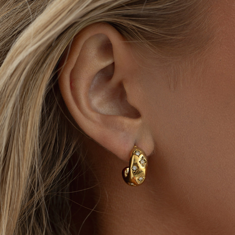 Elevate your style with these gorgeous hoop earrings with heart pendants. The beautiful cubic zirconia stone in the middle of the heart pendant adds that extra sparkle.