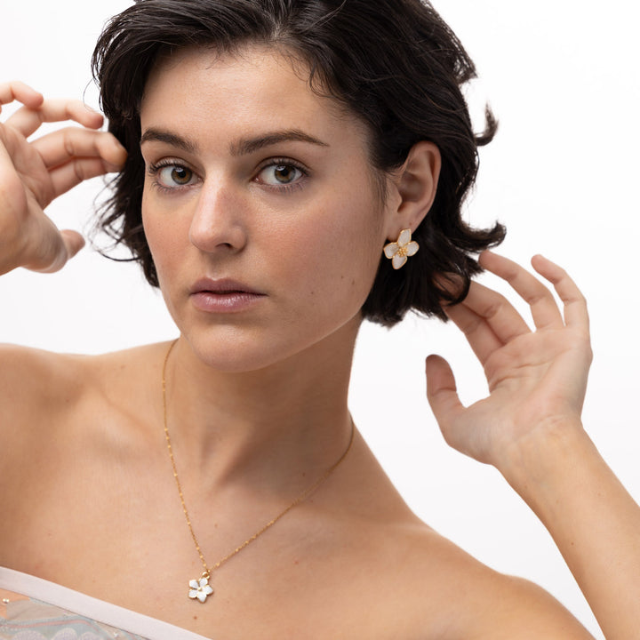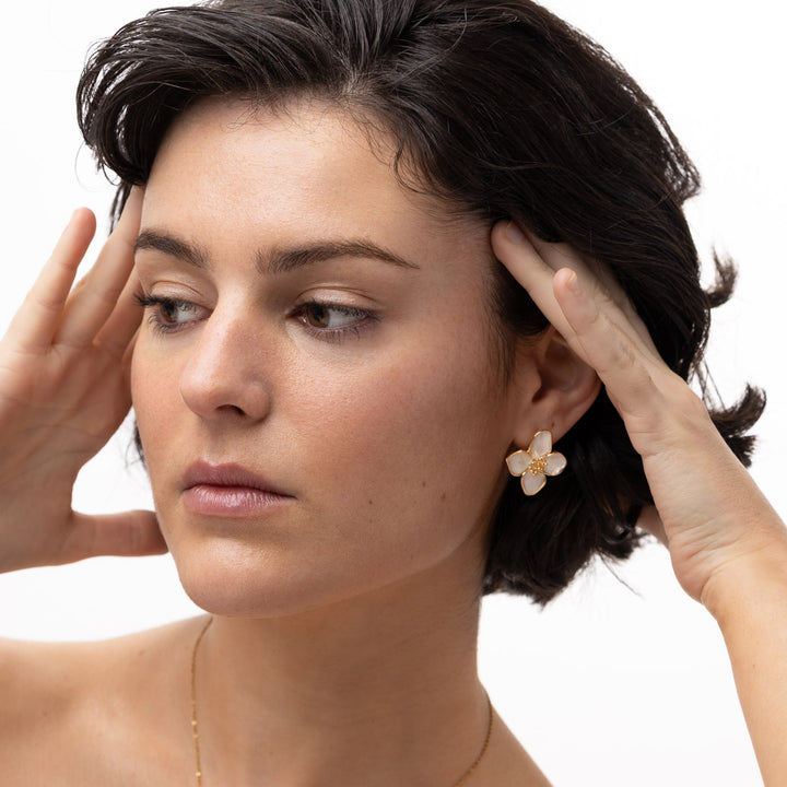 Verleihe deinem Tag mit Alora einen goldenen Glanz! Diese Blumen-Stiftohrringe sind so designt, dass sie jedem Outfit einen sanften, femininen Akzent verleihen und dabei dennoch mühelos cool bleiben. Trage sie, liebe sie, und lass dich von ihnen daran erinnern, immer mit Selbstbewusstsein zu erblühen.