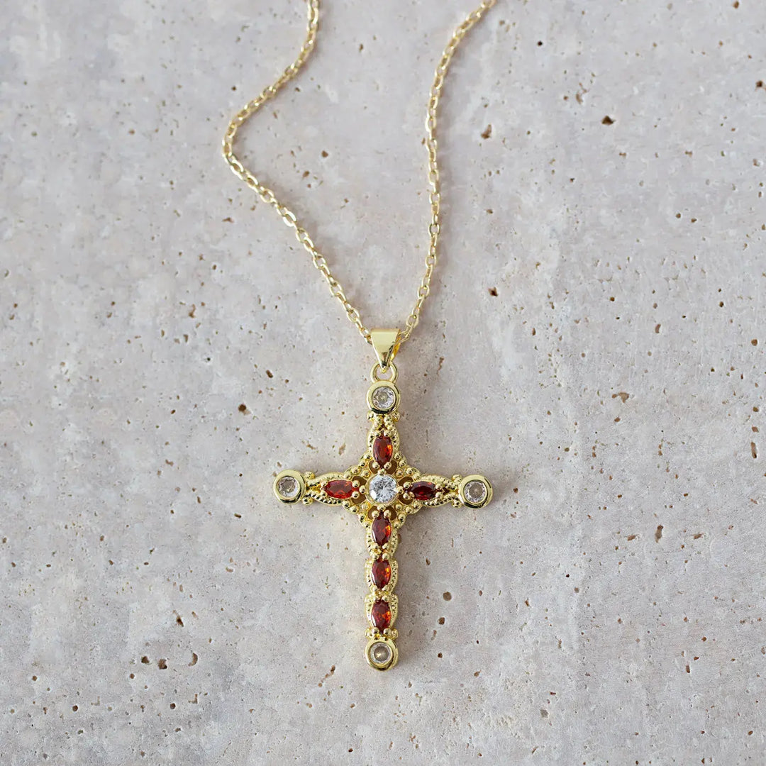 Wunderschöne Halskette mit einem atemberaubenden Kreuz, besetzt mit hochwertigem Zirkonia. Die Kette ist dünn und luxuriös. Mit 18 Karat Gold überzogen. Diese Schönheit kann Tag und Nacht getragen werden. Es sieht mit allem großartig aus!
