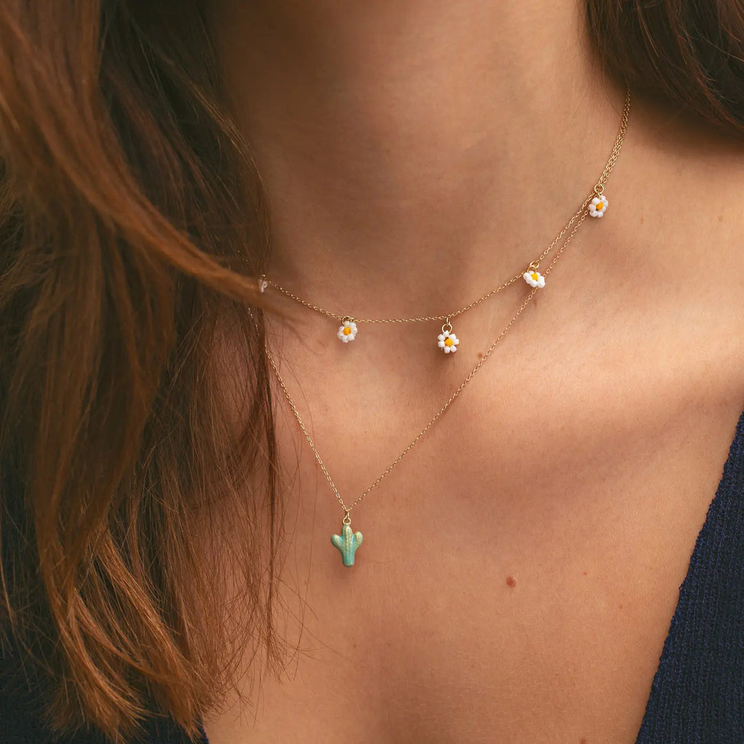 Die schönste Sommer-Halskette ist da! Bringen Sie sich in die richtige Stimmung mit unserer Kaktus-Halskette in grüner Emaille. Einfach zu stylen, perfekt für die Bräune!