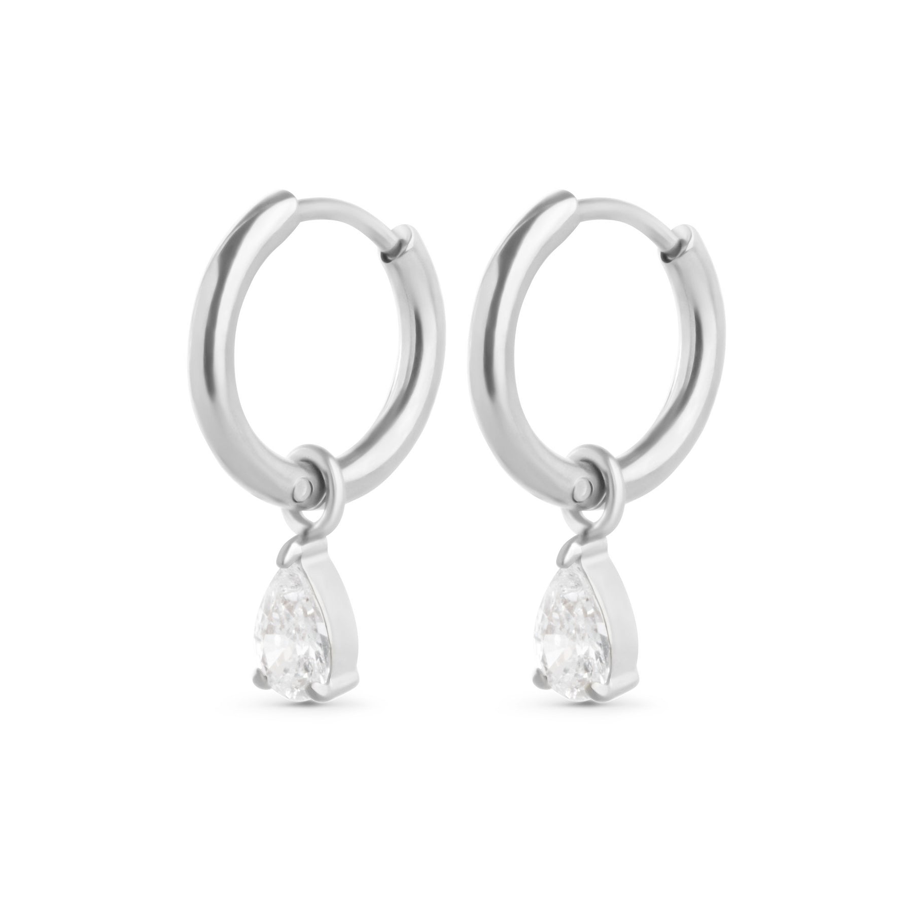 Elegante Creolen mit einem hängenden Kristall. Gefertigt aus wasserfestem Edelstahl.