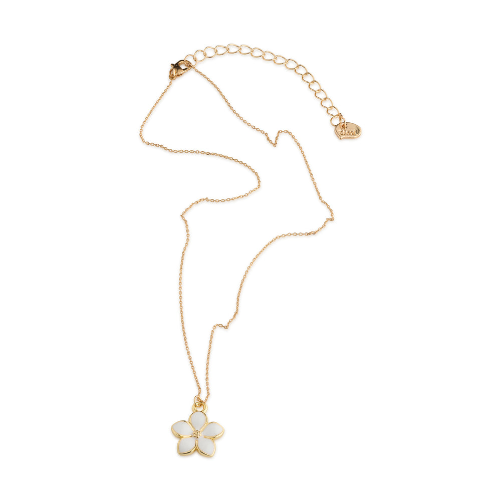 Lerne Gene kennen, die Blumen-Halskette, die alle Blicke auf sich zieht. Mit zarten weißen Emaille-Blumen und einer Goldkette, plattiert mit 18k Echtgold, steht dieses Schmuckstück für verspielte Eleganz. Perfekt zum Schichten oder Solo-Tragen, ist es die Art von Halskette, die jedes Outfit besonders macht.