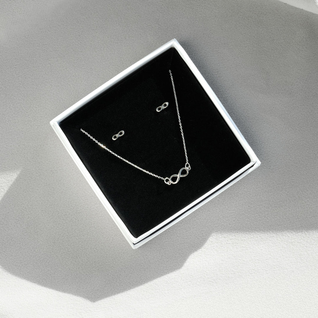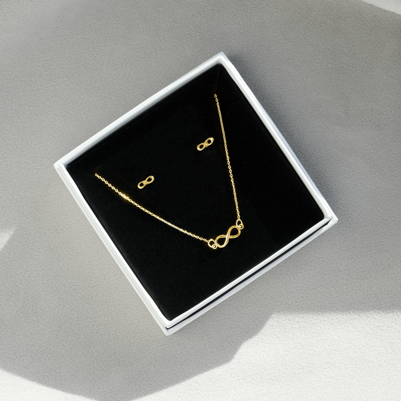 Das Infinity-Geschenkset aus Halskette und Ohrringen symbolisiert zeitlose Eleganz und endlose Liebe. Dieses wunderschöne Set aus Halskette und Ohrringen in Gold besteht aus einer eleganten Infinity-Halskette und passenden Ohrringen, beide mit Liebe zum Detail gefertigt. Dieses Set eignet sich perfekt für den Alltag oder besondere Anlässe und verleiht jedem Outfit einen Hauch von Raffinesse. Ein ideales Geschenk, um ewige Verbundenheit und Stil auszudrücken.