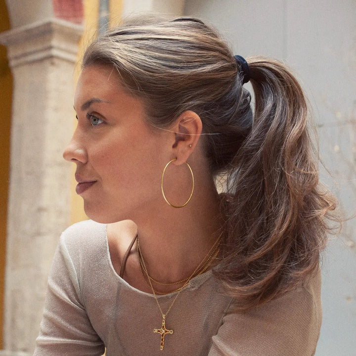 Werten Sie Ihren Alltagslook auf und bringen Sie ihn mit einem Paar Creolen auf die nächste Stufe. Ein Mädchen und seine Hoop-Ohrringe haben etwas ganz Besonderes an sich. Klassisch und zeitlos.