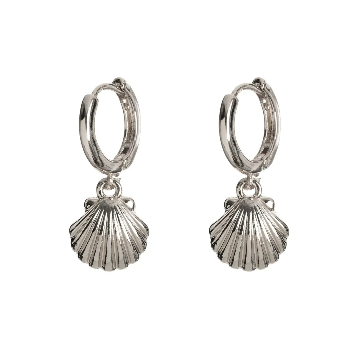 Mermaid Shell Hoop Earrings Silver