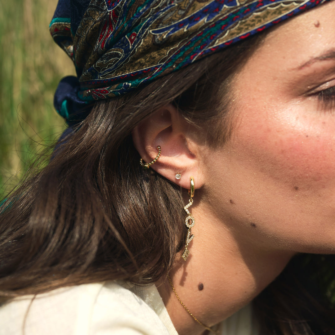 Sag es mit Liebe. Die Millie Love Letter Hoops sind charmante Creolen mit funkelnden Kristallbuchstaben – eine Hommage an old-school Liebesbriefe und moderne Romantik. Leicht, verspielt und perfekt zum Layering mit anderen Favoriten.